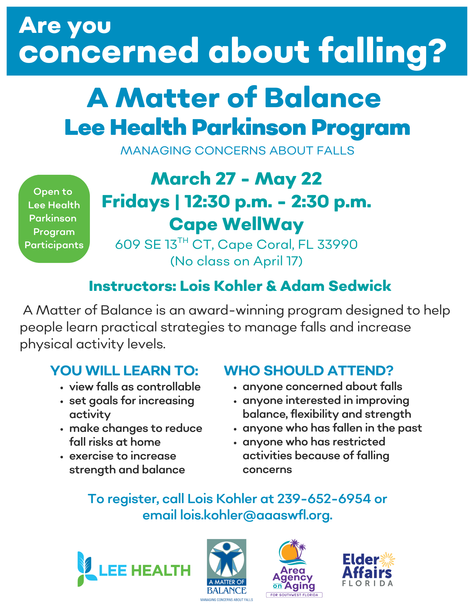 A Matter of Balance Program Begins in Cape Coral (For Lee Health Parkinson Program Participants)