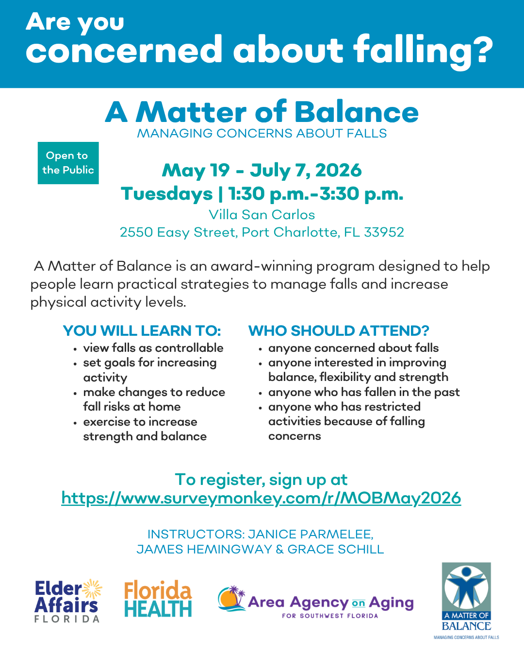 Classes take place on Tuesdays, from May 19 – July 7, 2026. To register: https://www.surveymonkey.com/r/MOBMay2026