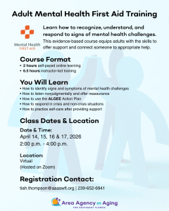 Adult Mental Health First Aid 4-Day Training Begins (Online)