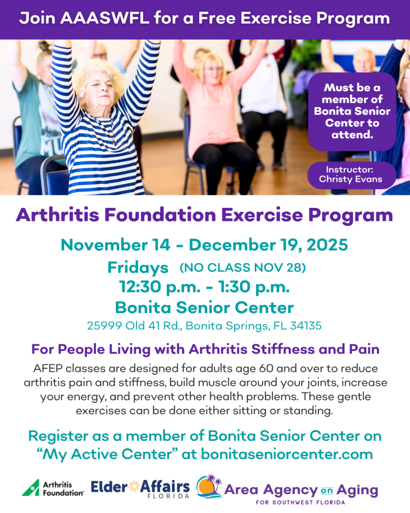 Register as a member of Bonita Senior Center on the “My Active Center” page at https://bonitaseniorcenter.com.