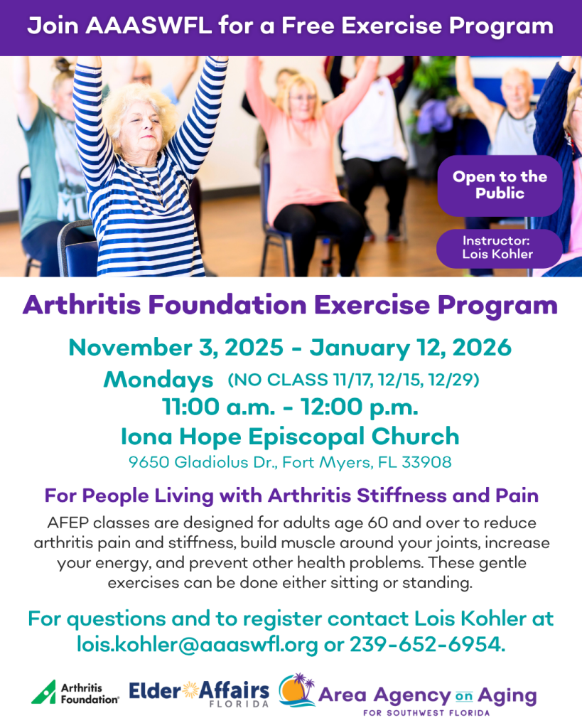 Open to the public, registration required. To register, email lois.kohler@aaaswfl.org or call 239-6954.