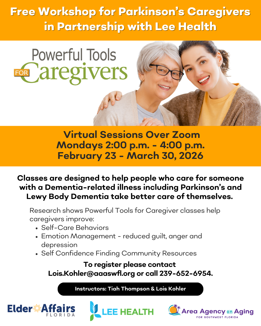 Virtual sessions take place over Zoom, Mondays from February 23 – March 30. To register, please contact Lois.Kohler@aaaswfl.org or call 239-652-6954.