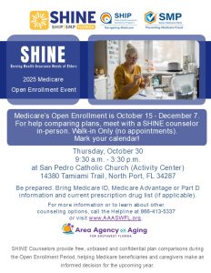 SHINE Open Enrollment Event Flyer (San Pedro Catholic Church 10-30-25)